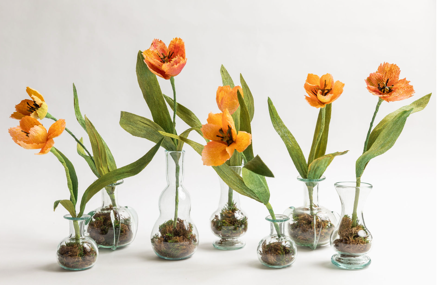 Made by local Chattanooga artist, Ashley Folkner, these paper flowers are a piece of art that you will never have to throw out. The paper is dyed, hand painted, and then assembled to resemble (with excruciating detail) a living tulip.